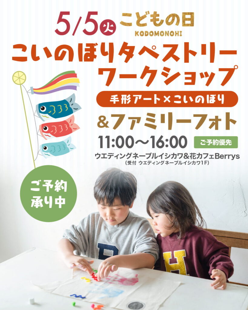 5月5日(火) #こどもの日\親子で楽しめるファミリーイベント開催します!/こいのぼりタペストリーワークショップ🎏手形アート × こいのぼり🎏& ファミリーフォト ス… -