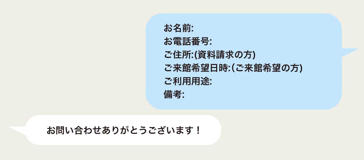 お問い合わせいただきました内容は、スタッフが確認次第、ご返信いたします。お急ぎの場合はお電話またはLINEなどでご連絡いただけますようお願いいたします。