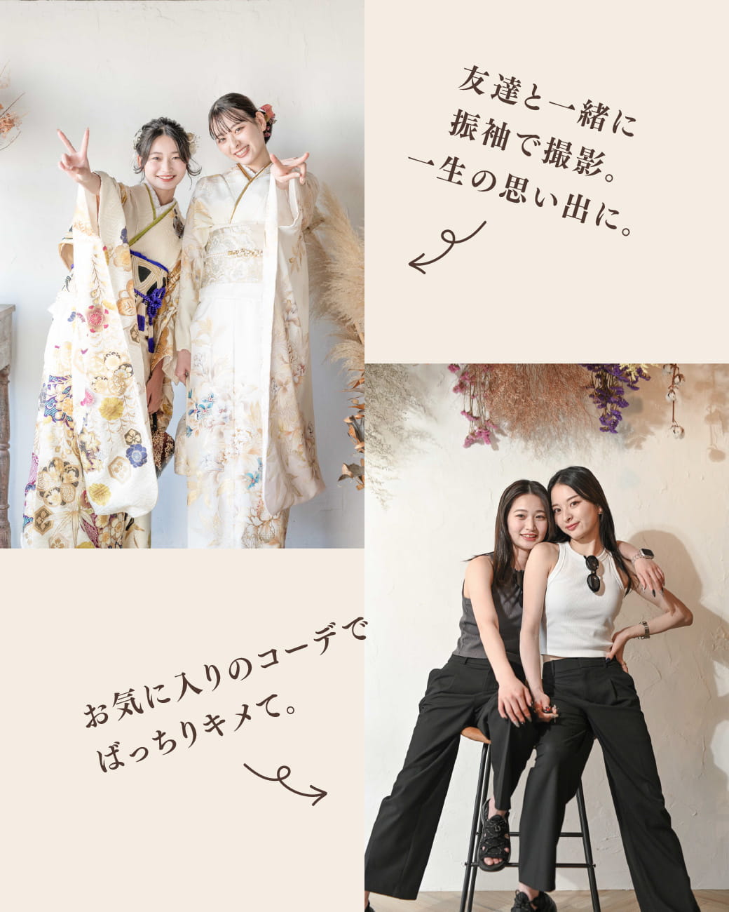 卒業の記念や、社会人になっても変わらない付き合いの記念に、大切な絆を撮影!