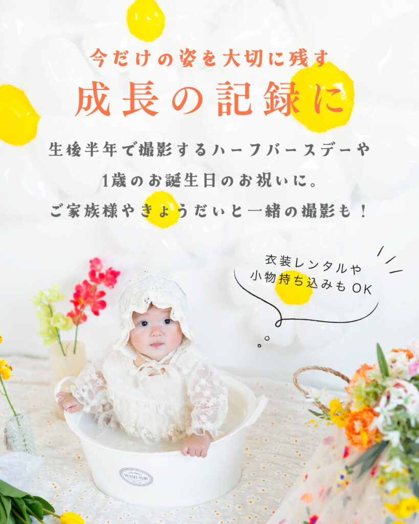 生後半年のハーフバースデーやお誕生日にバースデーフォトを撮影しませんか?