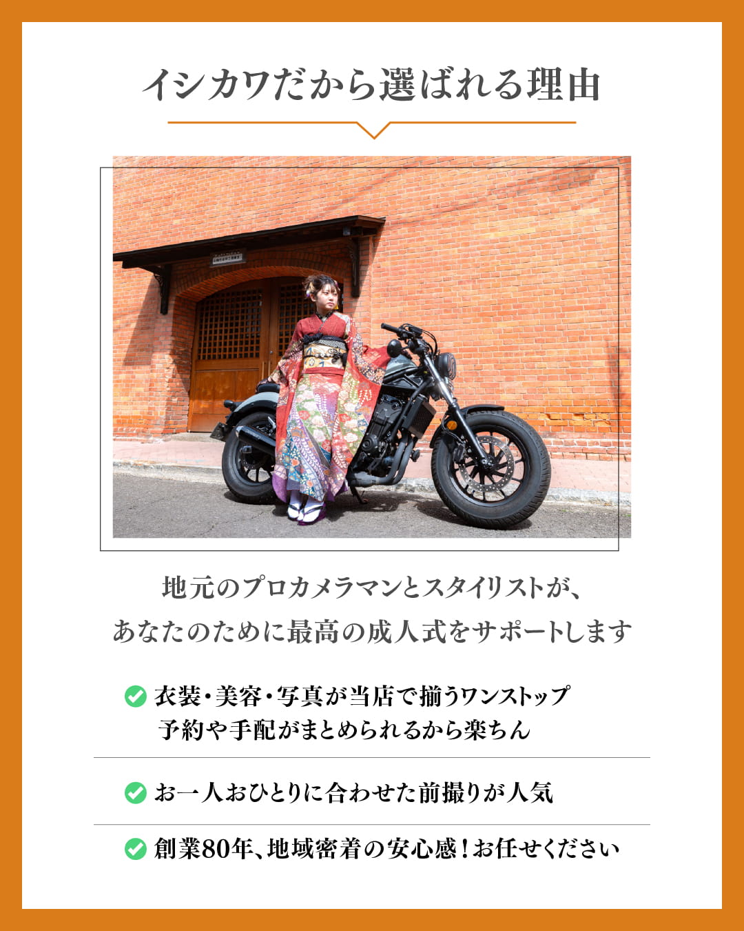 一生に一度の成人式だからこそ、私たちは“質”と“安心”にこだわっています。