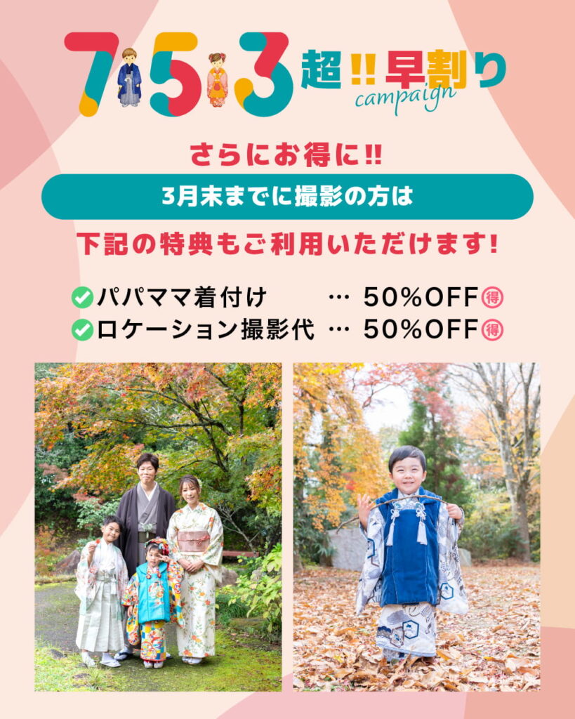 今なら、七五三の撮影が通常価格よりもとってもお得になる「超‼︎早割りキャンペーン」中!