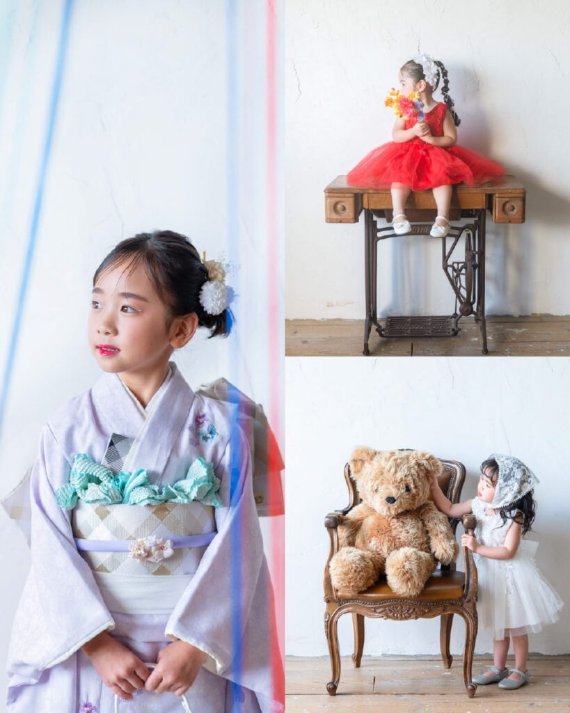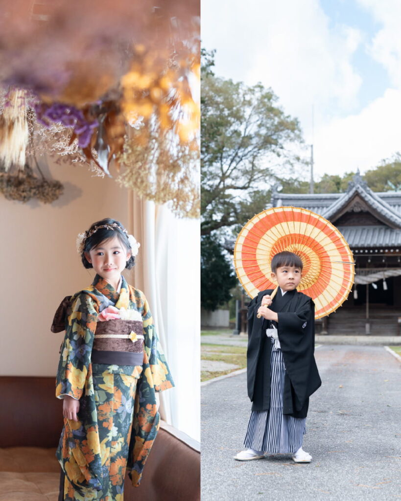 七五三は、基本的には男の子3歳5歳、女の子3歳7歳で行います。満年齢でも数え年齢でもどちらでもOK!お子さまやご家族のスケジュールに合わせて撮影&お参りをしませんか?