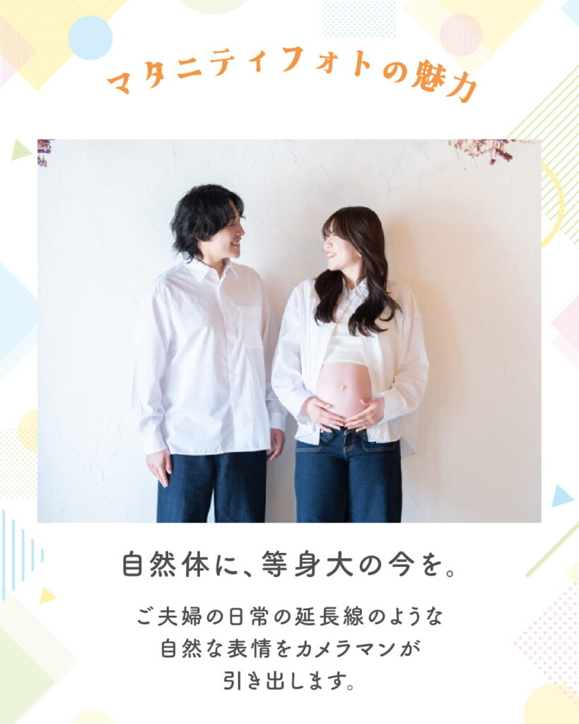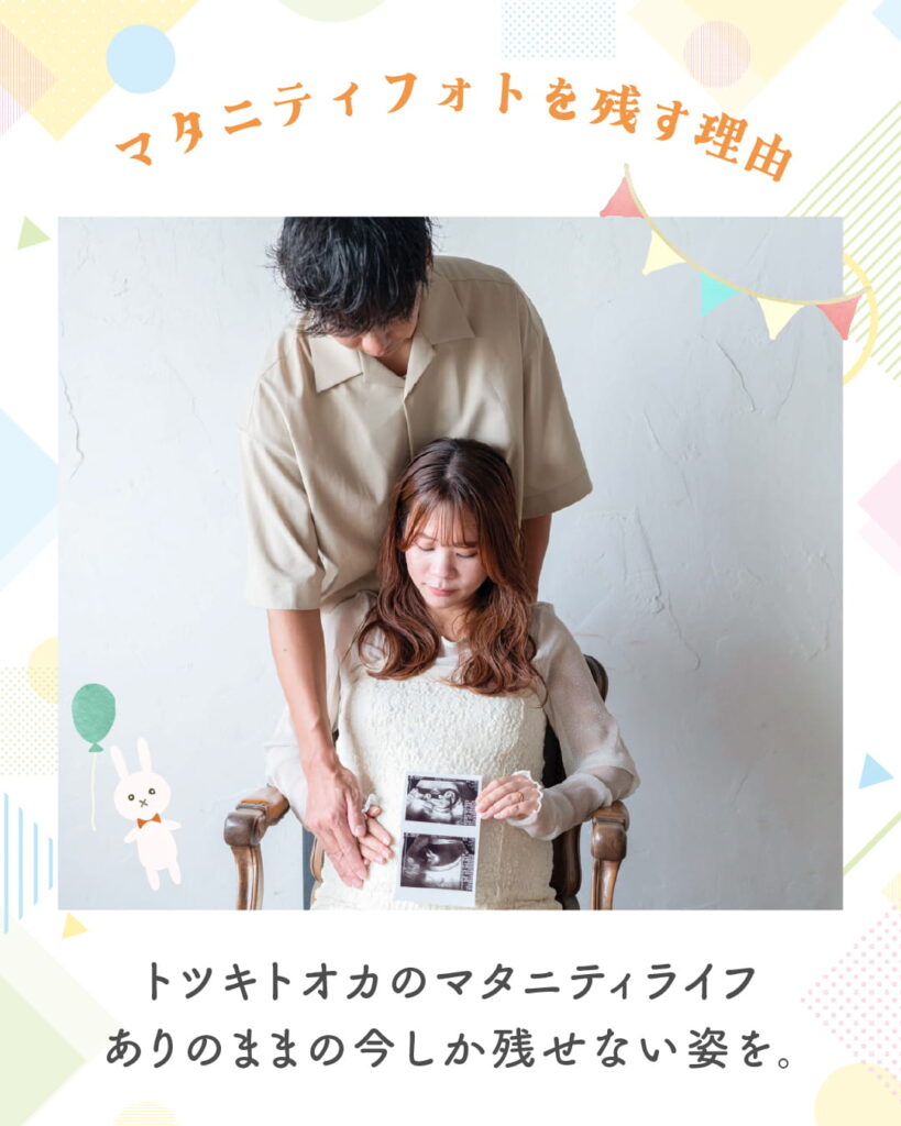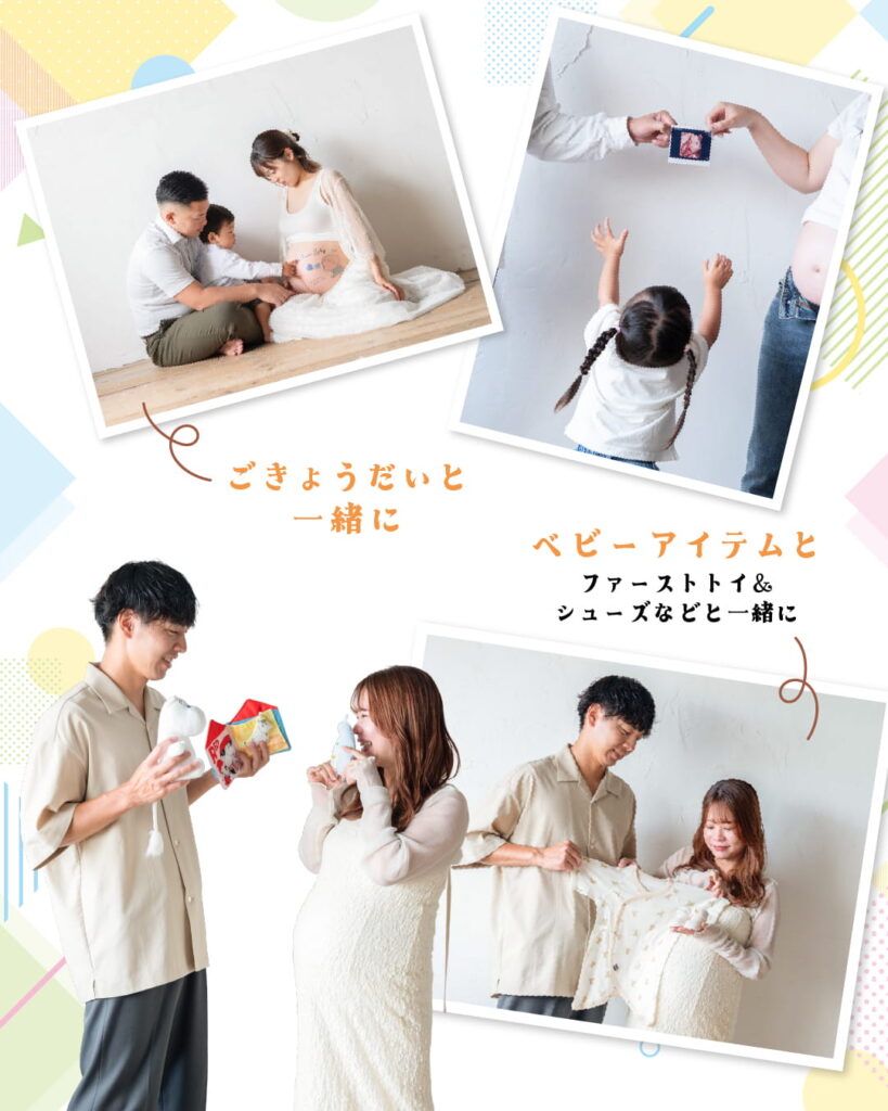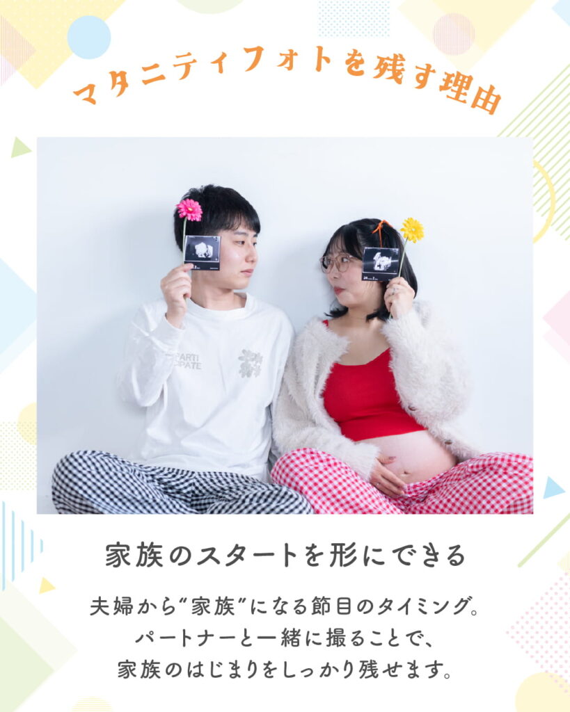 夫婦から“家族”になる節目のタイミング。パートナーと一緒に撮ることで、家族のはじまりをしっかり残せます。