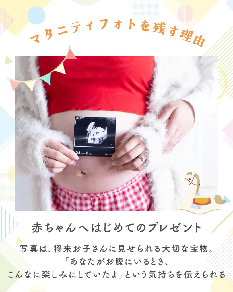 写真は、将来お子さんに見せられる大切な宝物。「あなたがお腹にいるとき、こんなに楽しみにしていたよ」という気持ちを伝えられます。