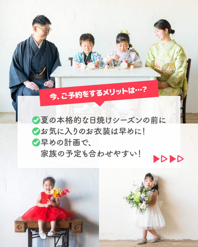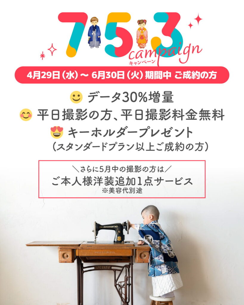 七五三キャンペーン〈4月29日~6月30日〉|七五三写真撮影|早めのご予約のメリットは…?