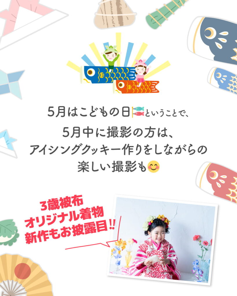 5月中に撮影の方はアイシングクッキー作りをしながら楽しい撮影も!